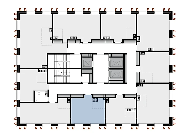 В стилобате размещаются торговые площади под магазины, рестораны, кафе. Будет организована зона коворкинга с разноуровневыми пространствами — от маленьких переговорных комнат до больших конференц-залов.
