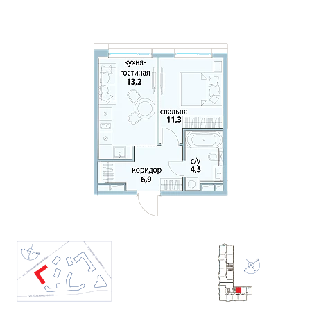 Вашему вниманию представлена 1-комнатная, в ЖК Зелёные Аллеи