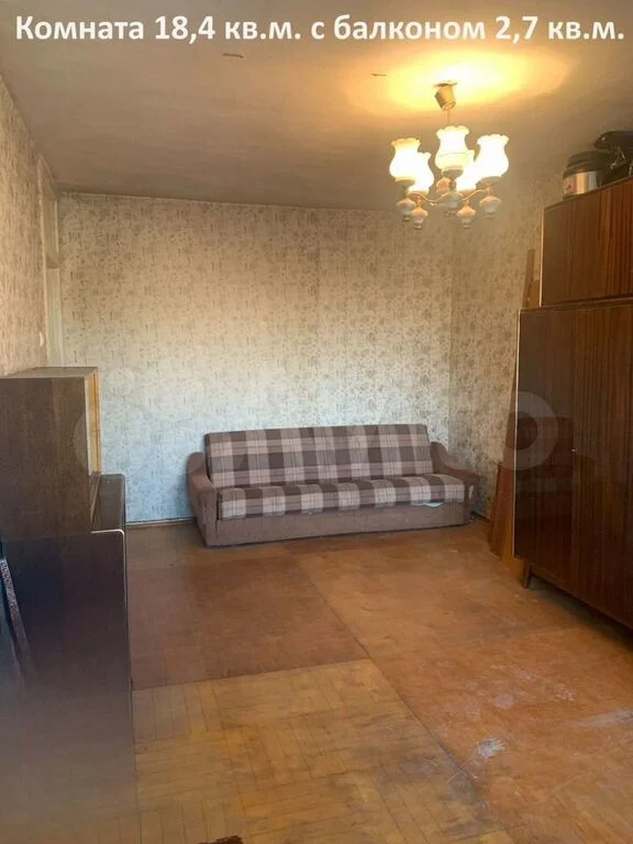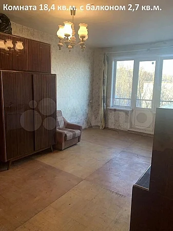 Комната 18,4 кв.м. с балконом 2,7 кв.м., кухня 5,9 кв.м., коридор 4,7 кв.м., ванная 3 кв.м..