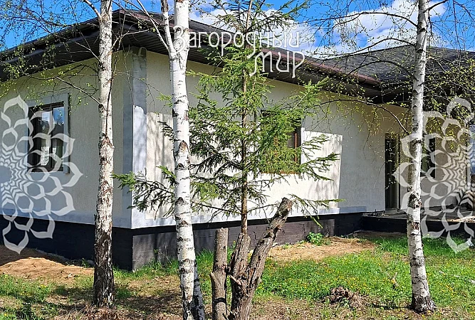У дома: фасад - декоративная штукатурка "Короед", кровля – мягкая черепица, окна – энергосберегающие стеклопакеты с ламинацией под дизайн дома, фундамент - монолитный ленточный, межкомнатные перегородки - кирпич, высота потолков - 3,15м.