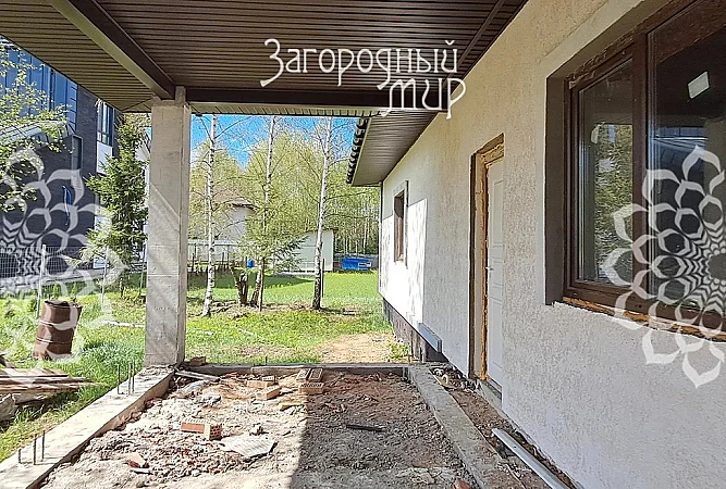 В доме просторная кухня-столовая-гостиная с выходом на большую террасу с колоннами, 3 спальни, холл, 2 с/у, котельная, пространство свободного назначения.