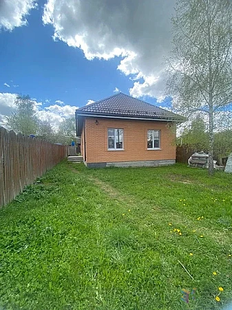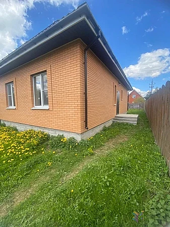 Дом под чистовую отделку. Ленточный фундамент. Стены — кирпич. Строили качественно, для себя. Окна — пластиковые стеклопакеты. Электричество 15 кВт. Колодец — 9 колец. В доме две спальни, гостиная, кухня, гардеробная и просторная прихожая.