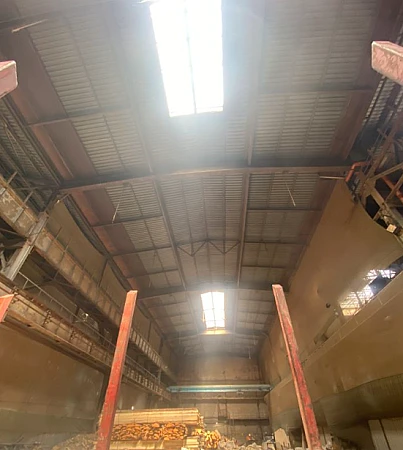 В цехах имеются: 5 мостовых кранов (25 т), 1 кран-балка (5 т).
