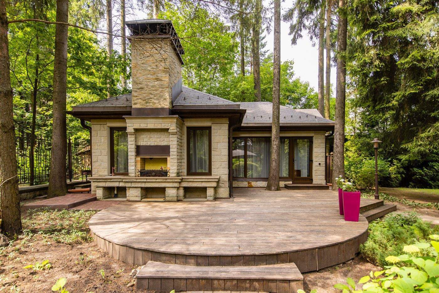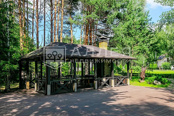 Лесной участок расположен на тихой тупиковой улице, рядом с парком поселка. У участка всего один сосед. Растут взрослы лесные деревья, сделан ландшафтный дизайн. Участок абсолютно приватный, не видно ни одного соседа. Установлено уличное освещение и автоматические ворота, огорожен по периметру, все дорожки вымощены брусчаткой.