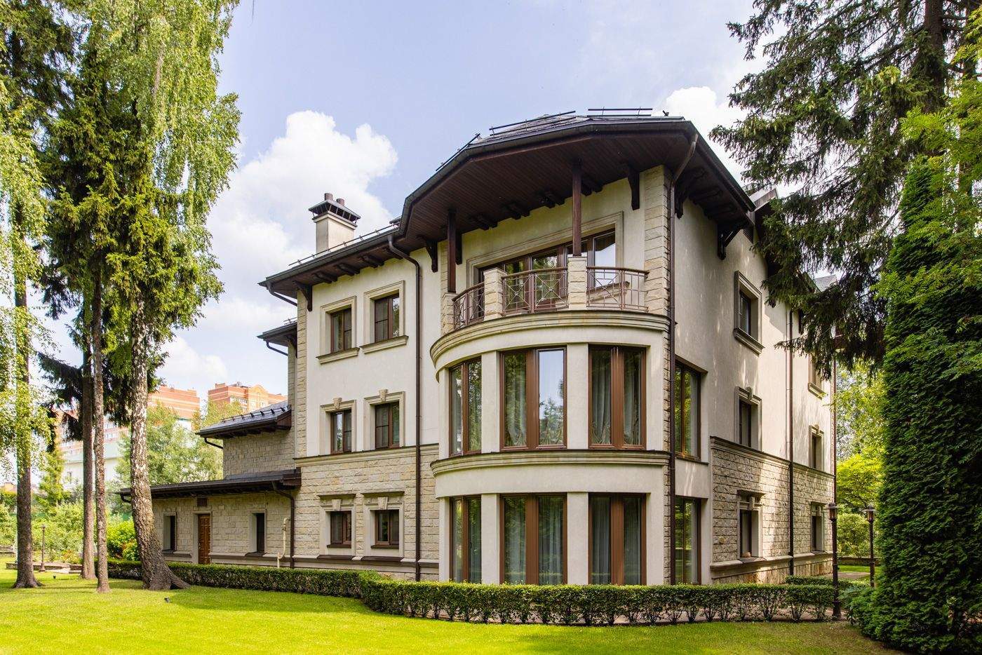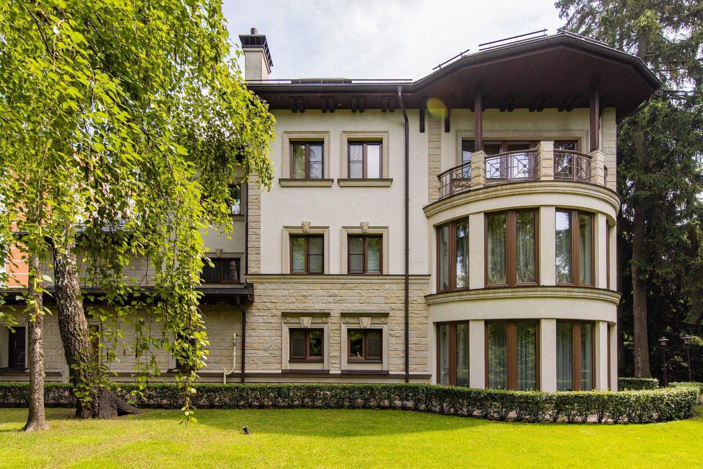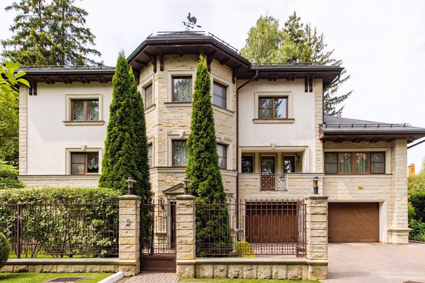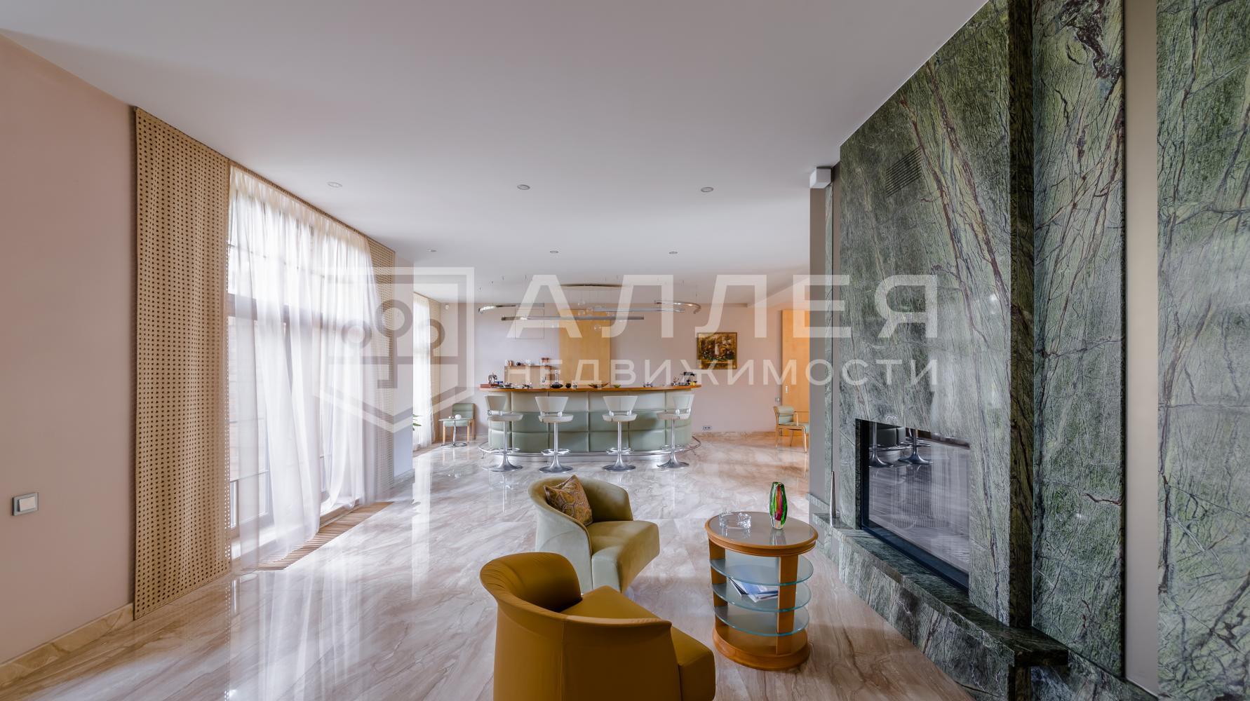 Дом с бассейном и лифтом на лесном участке. Построен в престижном поселке с развитой инфраструктурой. Сделана удобная планировка. Есть несколько мастер - спален на первом и втором этажах. Установлен итальянский лифт. В гостиной второй свет и высокие потолки 8м. В отделке использованы дорогие материалы, много мрамора и массива ценных пород дерева. Дом полностью меблирован премиальной итальянской мебелью Giorgetti и готов к проживанию. Для удобства есть вторая рабочая кухня с лифтом для подачи блюд в столовую зону. В SPA зоне большой бассейн с противотоком, водопадом и выходом на участок и хамам. Есть бильярдная и кинотеатр, большой гараж и квартира для персонала.