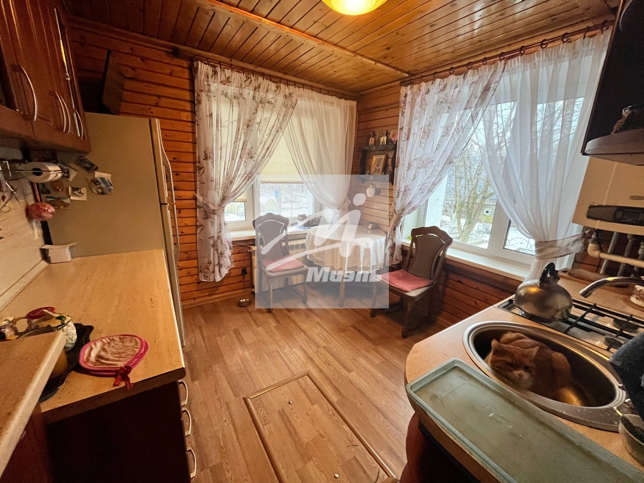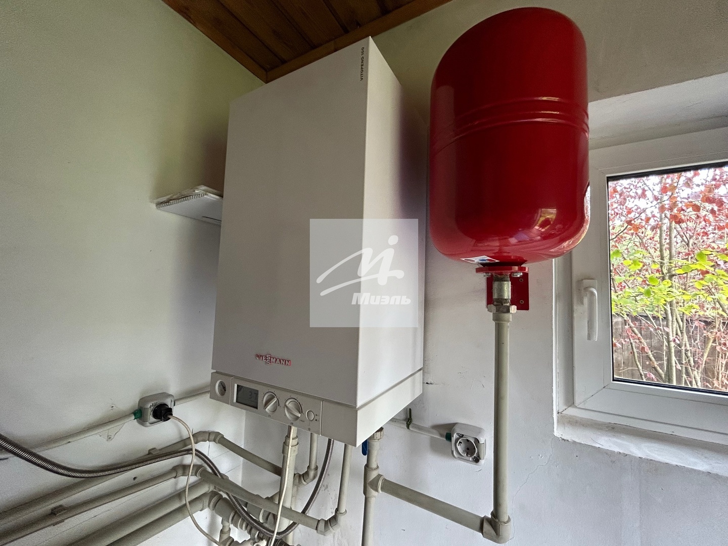 Коммуникации все заведены в дом: электричество 15 кВт, отопление – газ магистральный (котел Viessmann), водоснабжение – колодец 19 колец, канализация – септик.