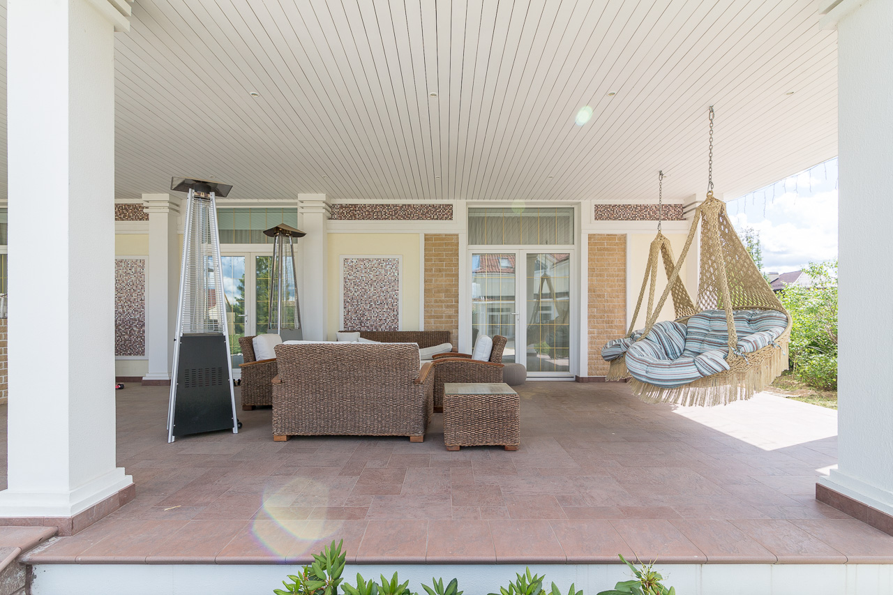 Особняк с бассейном готов к встрече с новым владельцем. Фасад оформлен с применением природных материалов светлых тонов. 2 этажа с мансардой вместили в себя гостиную, каминный зал, столовую с выходом на просторную террасу, 4 спальни, каждая из которых имеет индивидульный санузел,кабинет, гардеробную и постирочные комнаты. Внутренняя отделка -мрамор, паркетная доска, покрытие из английской шерсти, итальянский шторы Chicco Orlando. Дом оснащен высококачественной бытовой техникой. Есть система видеонаблюдения. Участок 26 соток с ландшафтным дизайном оборудован дренажем и освещением, включающимся автоматически. Ваш персонал сможет комфортно разместиться в отдельном доме. Ждем новых хозяев на просмотр дома