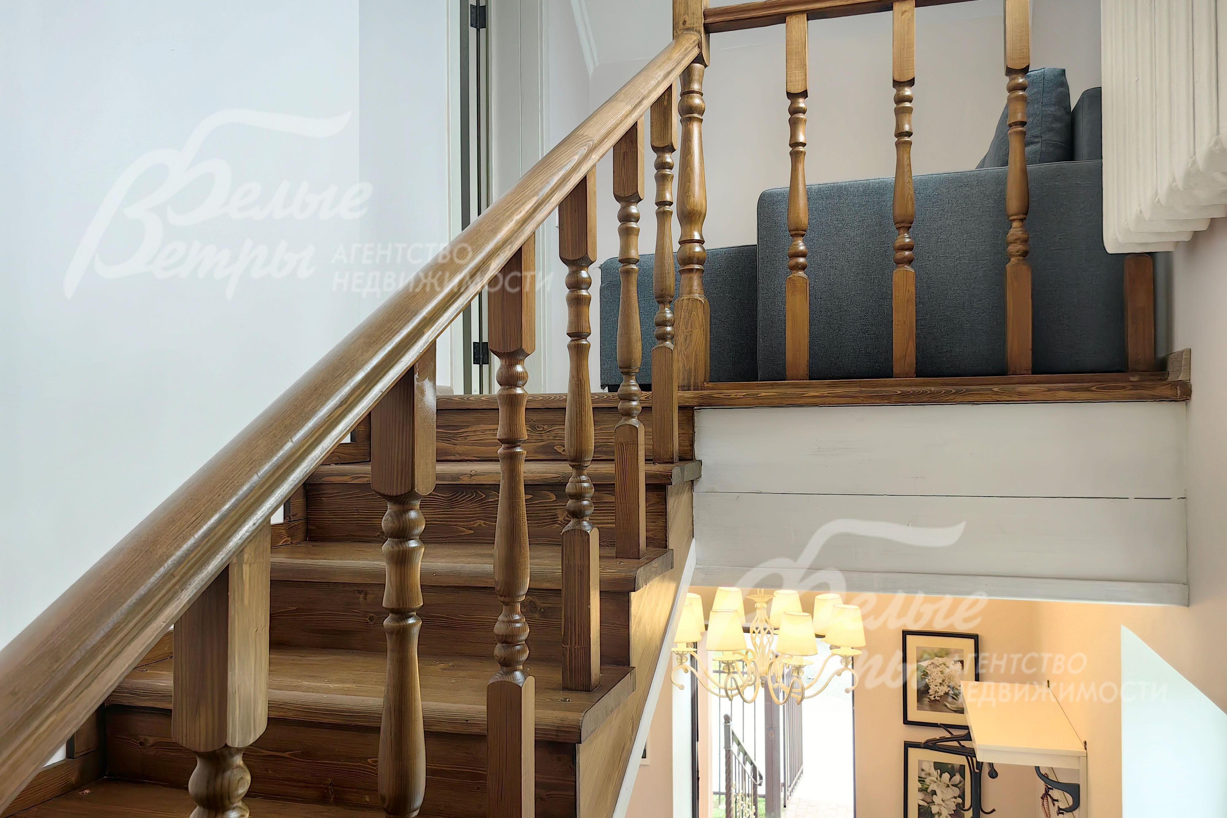 Внутренняя отделка: отделка в современном стиле минимализма: стены окрашены и оклеены обоями, в санузлах плитка; на полах ламинат, в гостиной и в спальне на цокольном этаже - плитка. Лестница шириной 90 см из массива сосны с деревянными перилами..