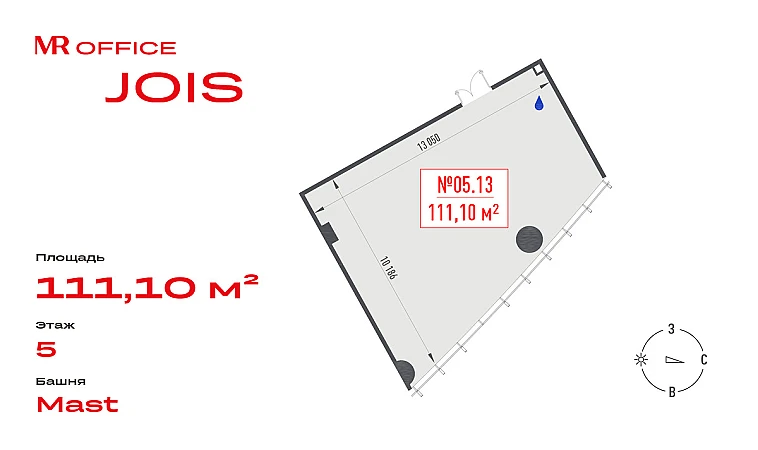 Предлагается офисное помещение 111.10 кв.м на 5 этаже БЦ Jois.