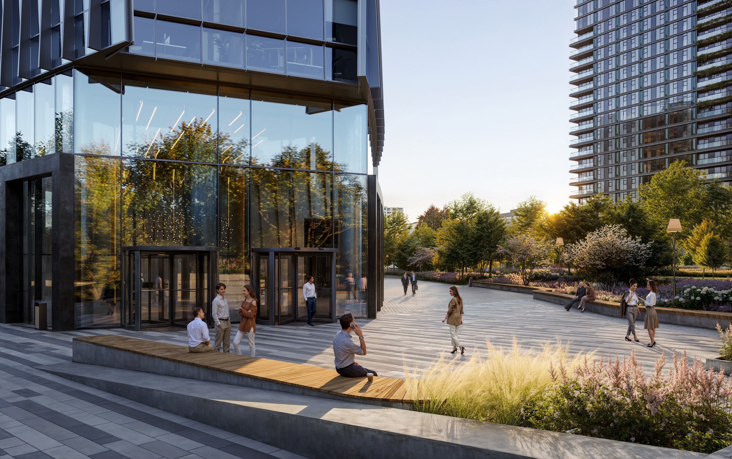 — Амфитеатр, коворкинг на свежем воздухе и общественные зоны для нетворкинга и командной работы