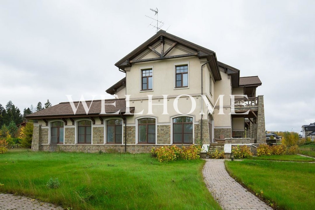 Предлагается к продаже усадьба «под ключ» площадью 1300 кв.м на участке 56 соток. Усадьба расположена в охраняемом коттеджном поселке «Урожай», в 5 км от Москвы по Новорижскому шоссе. Планировка основного дома 1300 кв.мЦоколь спортивный зал, комната отдыха с бильярдом, бассейн 6х6, сауна, блок для персонала спальня, санузел, постирочная, техническое помещение.Первый этаж холл, гостиная, кухня, столовая, кабинет, четыре спальни, два санузла.Второй этаж четыре спальни со своими гостиными, ванными комнатами и гардеробными.Мансарда этаж спальня с ванной комнатой, два кабинета.Возможна установка лифта. Отдельное строение, площадью 200 кв.мЦоколь гараж на три машины, мастерская, техническое помещение.Первый этаж помещение для персонала холл, две спальни, кухня, санузел.Мансарда свободная планировка. Перед домом большая гостевая парковка.Большой участок с ландшафтным дизайном липовая аллея, газон, дорожки, освещение, лесные деревья и декоративные кустарники, уединенная в деревьях беседка.Возможно расширение участка до 80 соток за счет аренды прилегающей территории.По границе участка протекает ручей. На участке возможно организовать вертолетную площадку.