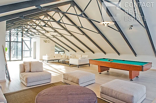 Инженерное обеспечение: все коммуникации разведены по дому, организованы точки подключения: электричество (частично), отопление (радиаторы и теплый пол), водопровод, канализация и слаботочная система. Система топления – 2 газовых котла (Viessmann) мощностью 65 кВт и 84 кВт, система горячего водоснабжения – 2 бойлера косвенного нагрева (Viessmann) по 200 л, выполнена вентиляция.