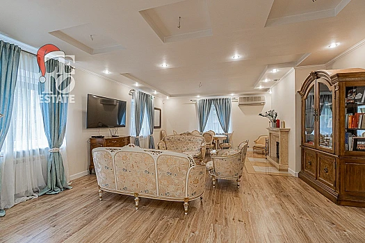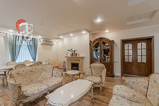 Предлагается к продаже кирпичный коттедж общей площадью 440 м² на участке 20 соток в охраняемом коттеджном поселке.Цокольный этаж просторный холл, спортивный зал, санузел, СПА, душевая, санузел, комната отдыха, мини кухня, котельная, постирочная, комната для обслуживающего персонала или гостевая спальня.Первый этаж прихожая, санузел, кабинет, холл, кухня, столовая, с выходом на террасу, просторная гостиная с камином и выходом на террасу, терраса с патио и камином.Второй этаж Холл, 3 спальных комнаты с санузлами, гардеробными и балконами.Третий этаж помещение свободного назначения.Участок крайний в поселке. На участке сосны, альпийская горка, летний бассейн, две застекленные беседки.Цена 1 200 000