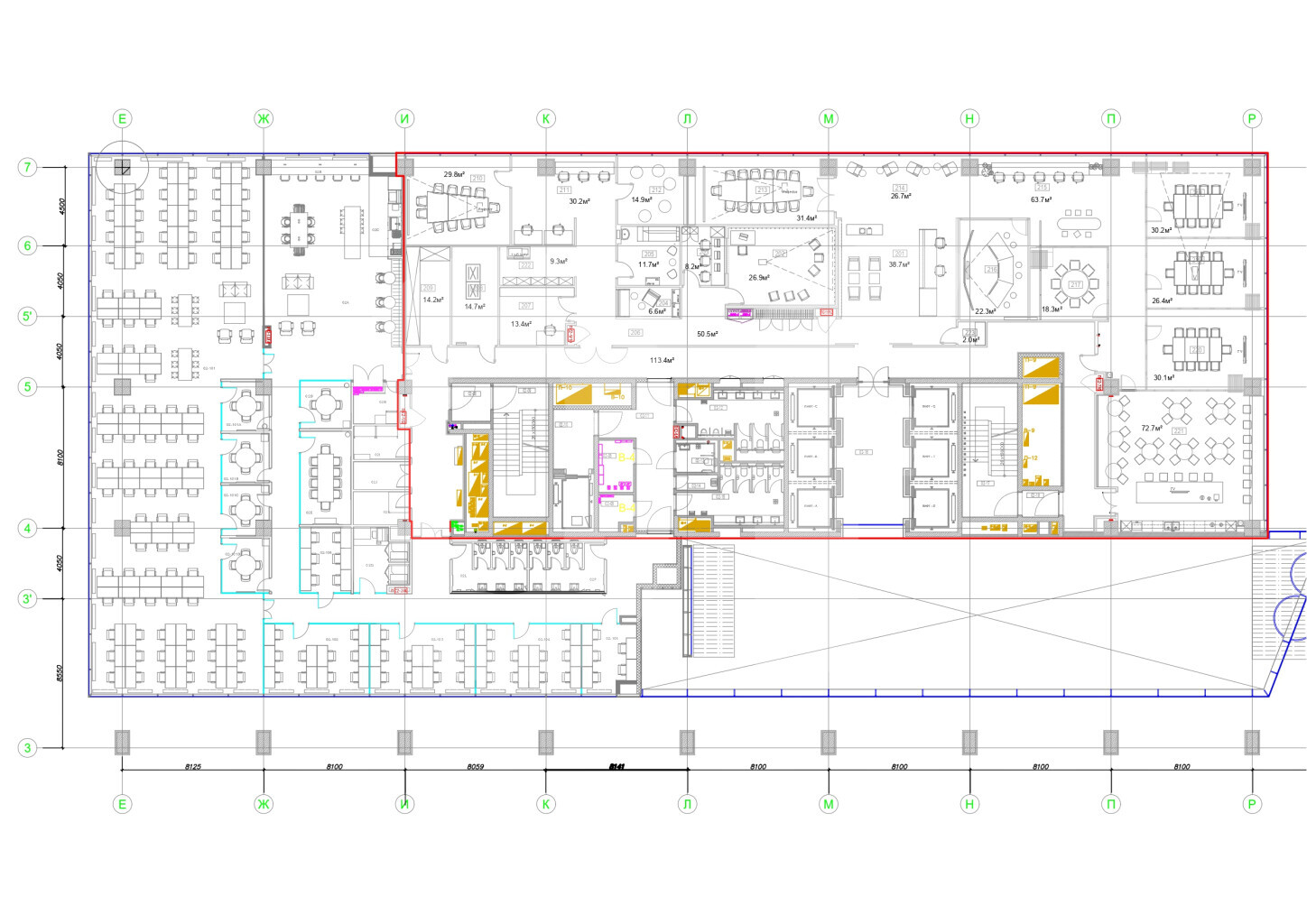 Решение под ключ. Помещение обладает высокой панорамностью за счет окон высотой 3,5 метра с возможностью проветривания. Выполнена качественная офисная отделка, пространство частично меблировано и готово к работе.