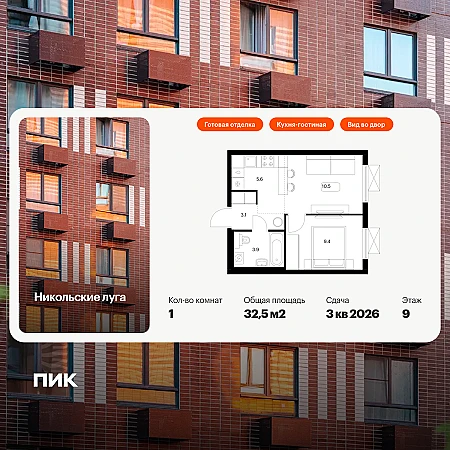 Квартира с чистовой отделкой. Доступность дополнительных опций уточняйте у застройщика.