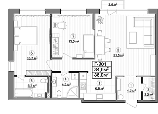 Квартира с чистовой отделкой. Доступность дополнительных опций уточняйте у застройщика.