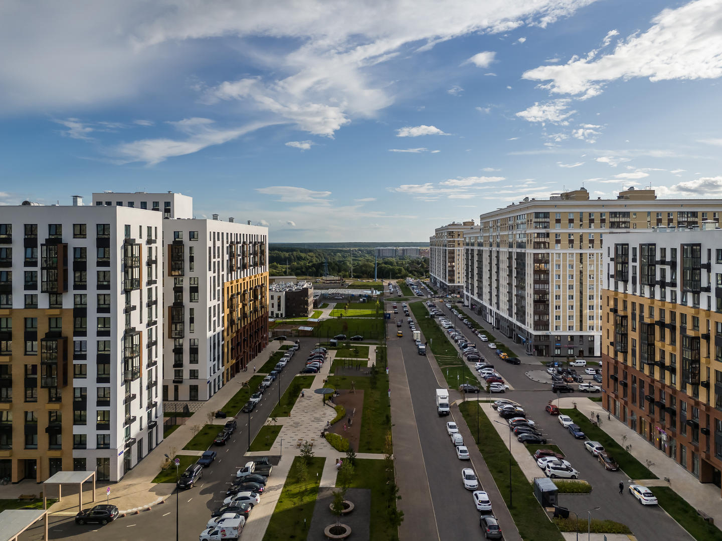 Часть домов уже сдана, на территории открыты две школы и три детских сада, а в будущем будет построена поликлиника, ТЦ, еще одна школа и три детских сада.