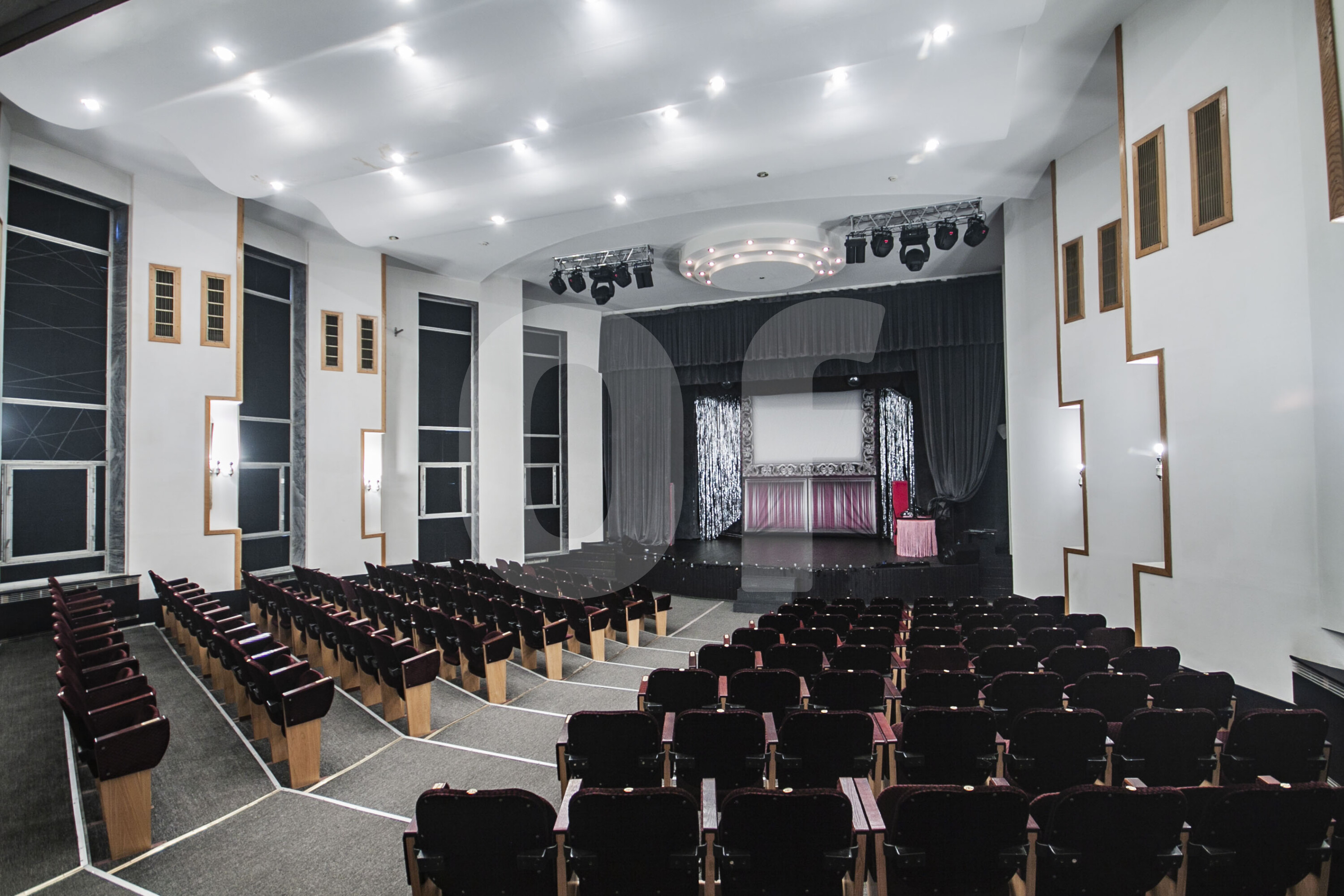 Мощность электричества - 750 кВт. На втором этаже расположен концертный зал площадью 300 м² с высотой потолков 9.5 метров. На первом этаже здания есть помещение с чашей под бассейн. Лифты ходят с первого по седьмой этажи. Технические этажи без окон, не арендопригодные. Один из четырех лифтов грузопассажирский. В текущем наполнении не является эффективным арендным бизнесом. Ведется поиск моноарендатора на здание целиком по ставке 14 400 ₽ за м²/год.