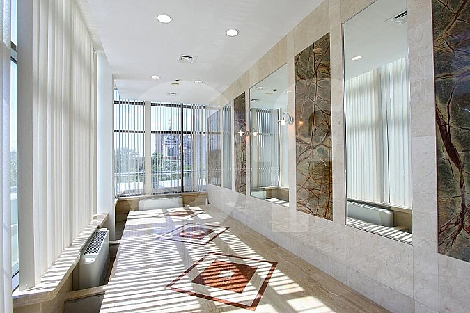 Современное офисное здание, соответствующее классу здания В+. Доступ в паркинг осуществляется на специальном грузовом лифте для автомобилей. Один из пассажирских лифтов спускает на оба уровня подвала. На самом верхнем уровне расположен вип этаж с выходами на балкон.
