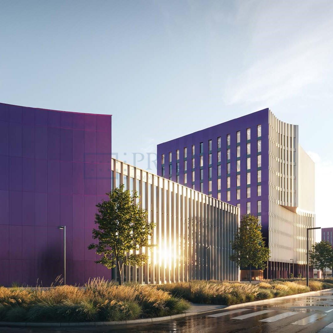 Его общая площадь превышает 32000 м2, из которых значительная доля отведена под офисные помещения с гибкими планами, позволяющими удовлетворить потребности различных компаний.