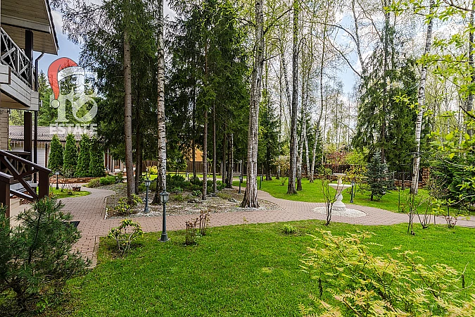 На участке правильной формы площадью 21 сотка выполнен ландшафтный дизайн, сделан дренаж, есть уличное освещение территории. Все коммуникации в поселке – центральные.