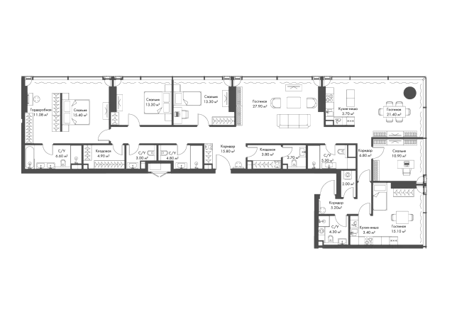 Купить 5к квартиру 201 м² в апарт-комплексе SLAVA (Слава)