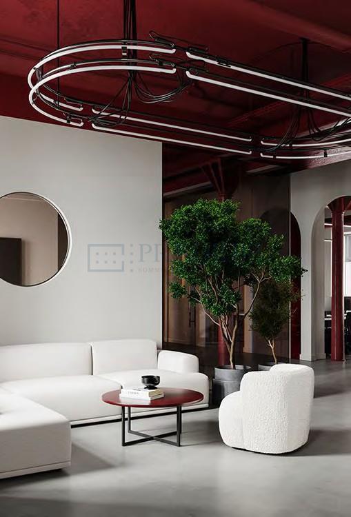 Интерьер дополнен просторными помещениями с высокими потолками, позволяющими эффективно организовать рабочие процессы.