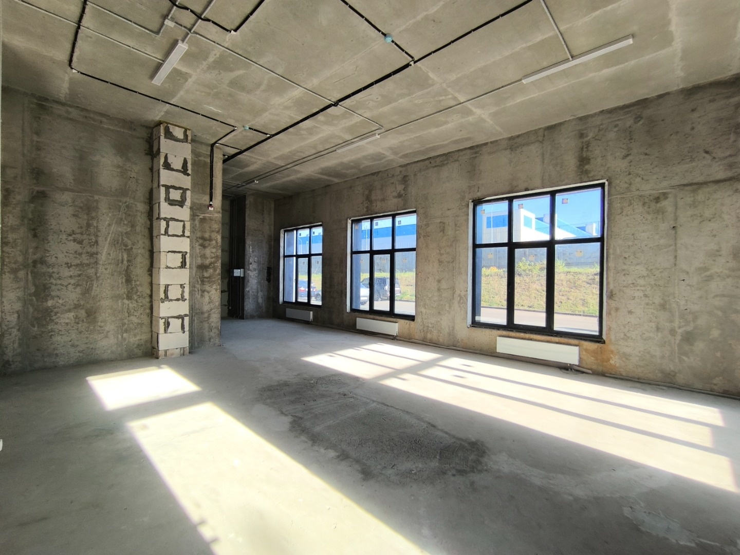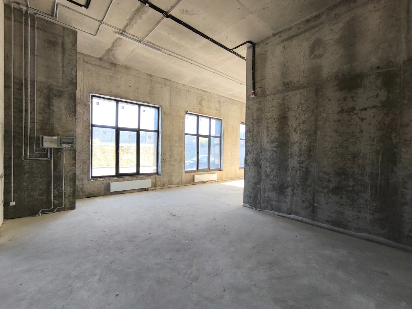 Объект в новом монолитном доме. Большие витражные окна, высокие потолки