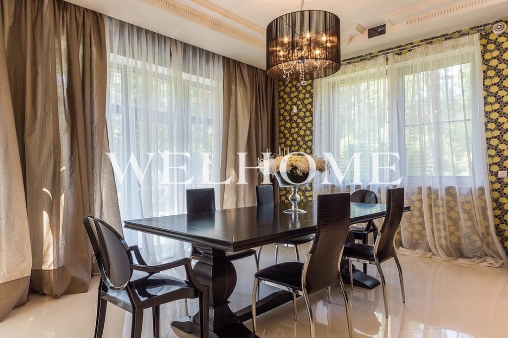 ID объекта: ZA-3912. Предлагается дом на лесном участке в камерном поселке. Фасад отделан камнем и деревом, выполнено панорамное остекление. В доме предусмотрены: бассейн, бильярдная, патио-терраса, эксплуатируемая кровля. Выполнен дорогой ремонт с дизайнерской мебелью. Отдельное здание для персонала на участке с хвойными деревьями. Детская площадка. Парковка.Поэтажное описание: Цоколь: бассейн, сауна, зона отдыха, бильярдная, гардеробная, веранда, с/у.1 этаж: гостиная, кухня-столовая, гардеробная, веранда, с/у.2 этаж: 3 спальни с гардеробными и с/у.3 этаж: спальня, зона отдыха, патио-терраса, с/у.