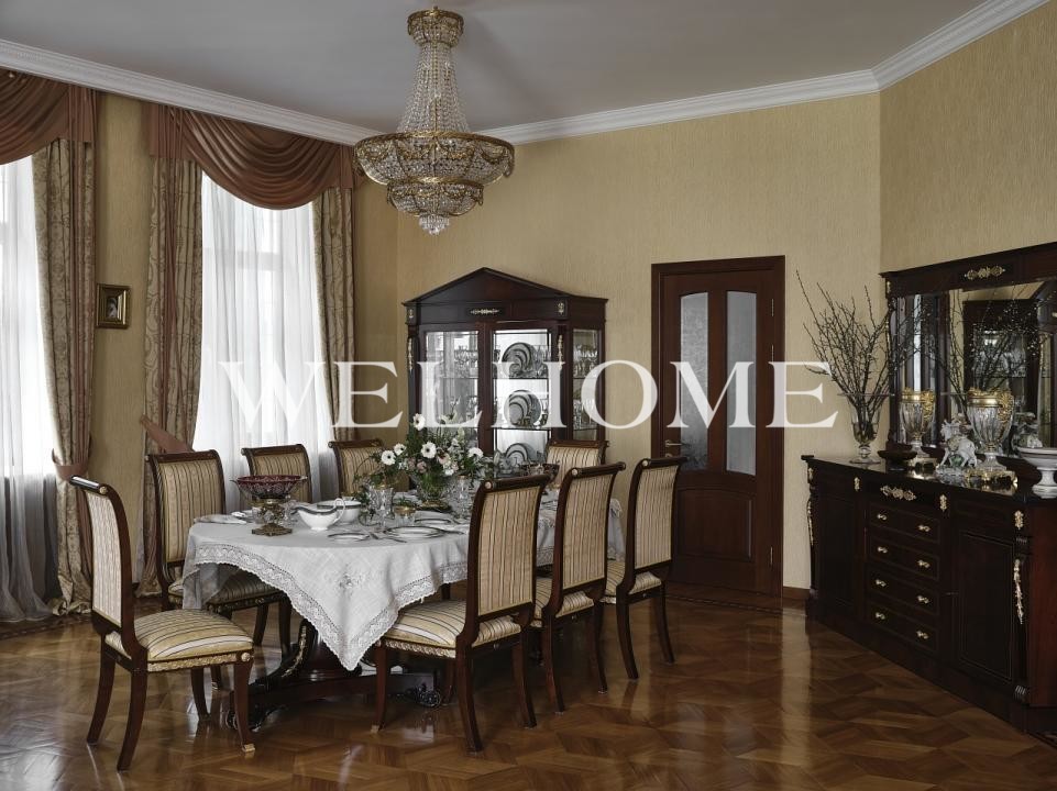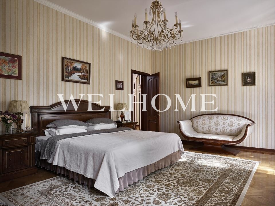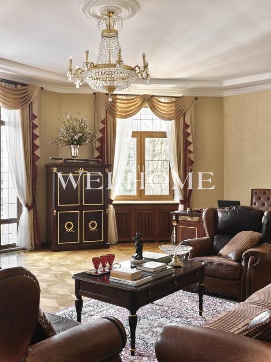 ID объекта: Z-10114. Предлагается резиденция в классическом стиле на участке с эксклюзивным ландшафтом в охраняемом поселке. В доме выполнен дизайнерский ремонт по индивидуальному проекту, есть бассейн, гостиная с камином, зимний сад, 8 спален, 9 с/у. На участке растут вековые сосны, выполнен первоклассный ландшафтный дизайн, создан фонтан, беседка, высажены декоративные растения из Германии, цветы. Все коммуникации центральные.Поэтажное описание: Цоколь: бассейн 12,5 х 6 метров, спортивный зал, 2 душевые комнаты, с/у;1 этаж: зимний сад, гостиная, кухня, кабинет, холл, 2 с/у, подсобные помещения;2 этаж: 4 спальни с гардеробными комнатами и с/у;3 этаж: 4 комнаты, 3 с/у.