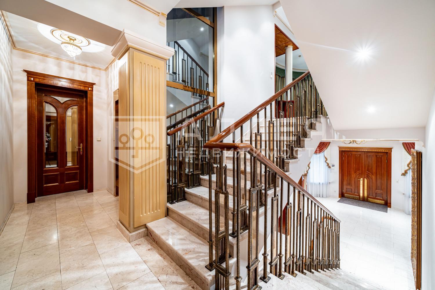 ID объекта: Z-10442. Предлагается особняк на лесном участке в элитном строго охраняемом поселке. Авторские интерьеры, созданные американским архитектором, уникальная мебель, очень удачная планировка, самая современная инженерия. В отдельно стоящем здании - гараж на 3 м/м с оборудованной мойкой, помещение для охраны, трехкомнатная квартира для персонала.Поэтажное описание: Цоколь: холл, бильярдная комната с баром, спа-зона: джакузи, солярий, массажный стол, сауна, хаммам, душевая, с/у, винная комната, комната для хранения шуб, гардеробная, котельная, прачечная;1 этаж: холл, гардеробная, кухня-столовая с выходом на террасу, гостиная с камином, кинотеатр, гостевая спальня с с/у, с/у;2 этаж: кабинет с выходом на балкон, главная спальня с с/у и гардеробной, 2 спальни с с/у;Мансарда: тренажерный зал, помещения свободного назначения.Участник ассоциации AREA!