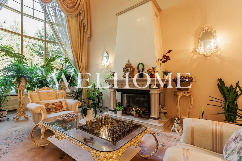 ID объекта: Z-10990. Актуально и без комиссии! Предлагается классическая усадьба под ключ на лесном участке 54 сотки с ландшафтом. В доме кинотеатр, бильярдная, зона отдыха, сауна. На освещенном участке гараж на 3 м/м с квартирой для охраны и персонала, беседка с барбекю, ротонда, фонтан. Коммуникации все центральные, дополнительно скважина.Поэтажное описание: Цоколь: кинотеатр, бильярд, зона отдыха, с/у, сауна;1 этаж: гостиная, столовая, кухня, кабинет, спальня, с/у;2 этаж: 3 спальни, 2 с/у, гардеробная.Дополнительные постройки: Гараж на 3 м/м с квартирой для охраны и персонала, беседка с барбекю, ротонда, фонтан.