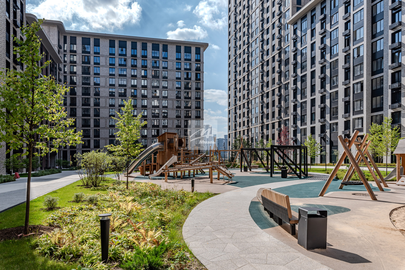 - В пешей доступности — школы, детские сады, спорткомплексы и парки.