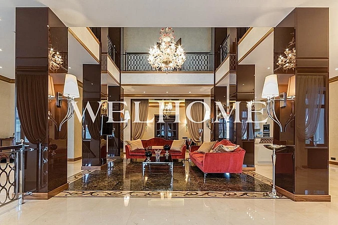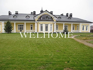 ID объекта: Z-12591. Предлагается дом под ключ на благоустроенном участке в охраняемом поселке. Великолепный особняк с качественной отделкой современными материалами.Поэтажное описание: Планировка основного дома (1000 м):Цоколь - кухня, 2 спальни, 2 с/у, винный погреб, постирочная, котельная, гараж на 4 м/м;1 этаж - кухня - столовая, двусветная гостиная с выходом на террасу, кинозал с выходом на террасу, кабинет, гостевой с/у, гардероб;2 этаж - спальня с будуаром, 2-мя гардеробными и ванной, спальня с гардеробной, ванной комнатой и выходом на балкон, спальня с гардеробной и ванной комнатой.Планировка гостевого дома:1 этаж - терраса с барбекю, двусветная бильярдная с камином, гардеробная, кухня, комната отдыха с бассейном и панорамным остеклением, сауна, массажный кабинет, с/у с душевой, спортзал;2 этаж - второй свет, 2 спальни, каждая с с/у и выходом на балкон.