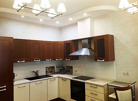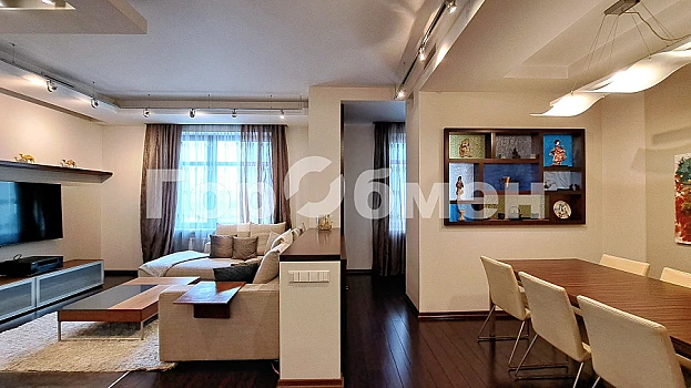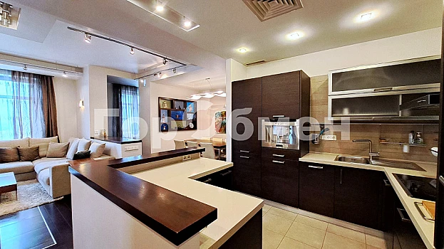 ID объекта: GA-3208. В аренду предлагается четырехкомнатная квартира с отделкой в современном стиле. Планировка: гостиная, кухня, 3 спальни, 2 санузла, сауна. Отделка выполнена с применением высококачественных материалов, на полах уложен дубовый паркет. Квартира укомплектована мебелью от итальянских производителей и необходимой бытовой техникой. Из окон открывается вид на Миусский парк. Высота потолков – 3 м. Парковка стихийная. Въезд во двор под шлагбаум.