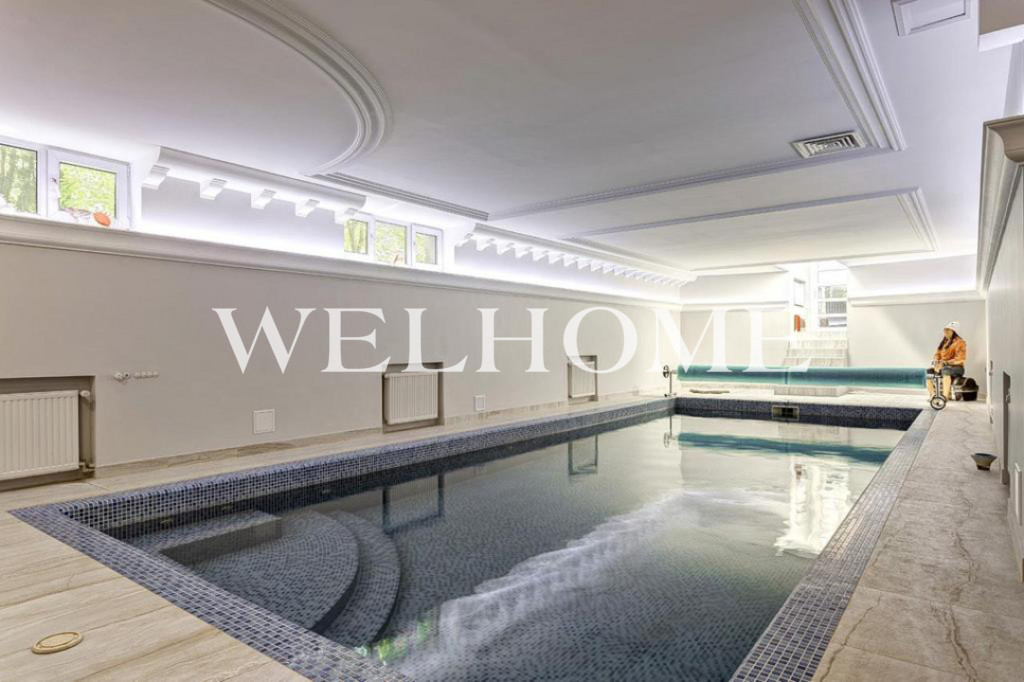 ID объекта: Z-13919. Предлагается дом, готовый к проживанию, в охраняемом коттеджном поселке.Поэтажное описание: Цоколь: бассейн, бильярд, домашний кинотеатр, сауна, спортзал, с/у, котельная, постирочная, сезонная гардеробная;1 этаж: холл, кухня, гостиная, кабинет, терраса, с/у, квартира для персонала, гараж на 2 м/м;2 этаж: мастер спальня с ванной комнатой, 2 спальни, ванная комната, 2 гардеробные, терраса;Мансарда: 2 спальни с ванными комнатами, 2 гардеробные.Участник ассоциации AREA!
