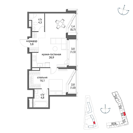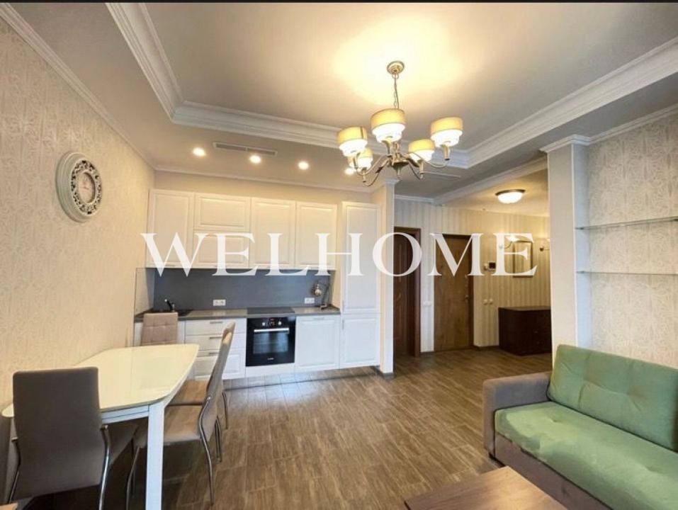В квартире объединена зона кухни гостиной, и выделены 2 спальни. Квартира полностью меблирована. Установлена вся необходимая техника для комфортной жизни. Из окон квартиры открывается великолепный вид.
