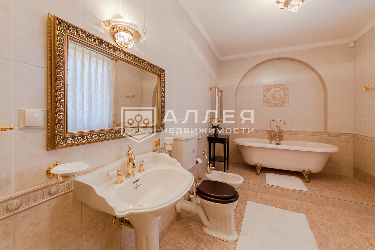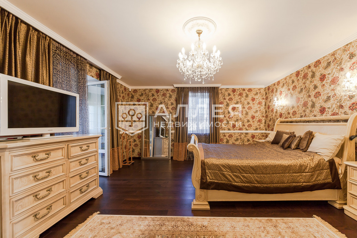 Дом на шикарном лесном участке полностью готов к проживанию. Из окон гостиной и спален открывается красивый вид на сосны и ели. Дом обставлен эксклюзивной мебелью и оснащен техникой лучших производителей премиум-класса. Изысканный дизайн дома выполнен в классическом стиле. В доме высокие потолки, панорамные окна, удобная функциональная планировка, из гостиной сделан отдельный выход на террасу. Лестницы дома украшают кованые перила. В доме предусмотрена уютная зона отдыха с дровяным камином. Произведен качественный ремонт с использованием дорогих экологически чистых материалов, дом строился для себя. Полы выполнены из высококачественной массивной дубовой доски и керамогранита. В цоколе предусмотрен спортивный зал и установлен бильярд, оборудован винный погреб. В отдельно стоящем на участке гостевом доме площадью 300 кв.м. оборудована СПА-зона с русской баней, хаммамом, купелью и уютной зоной отдыха. Есть квартира для персонала с отдельным входом.