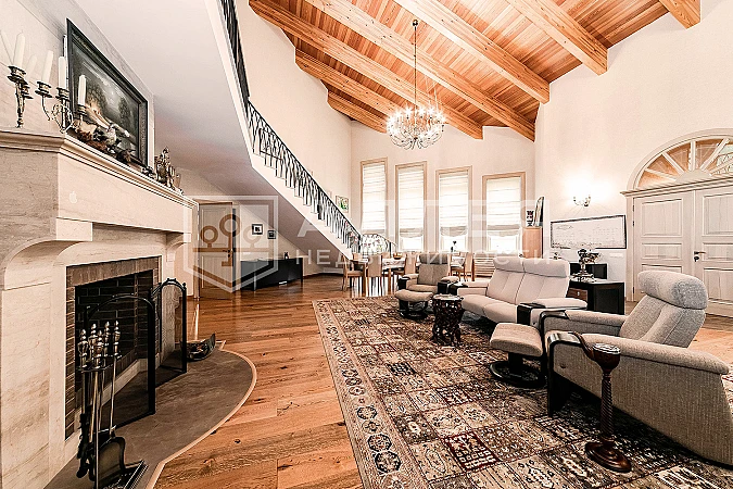 Большой прилесной участок с гольф - полем. На участке много взрослых деревьев и кустарников. Построен хамам, гараж на 4 автомобиля, помещение для персонала, беседка, зона барбекю, автополив и дренаж, место для костра выложено брусчаткой. С балкона открывается панорамный вид на участок и лес.