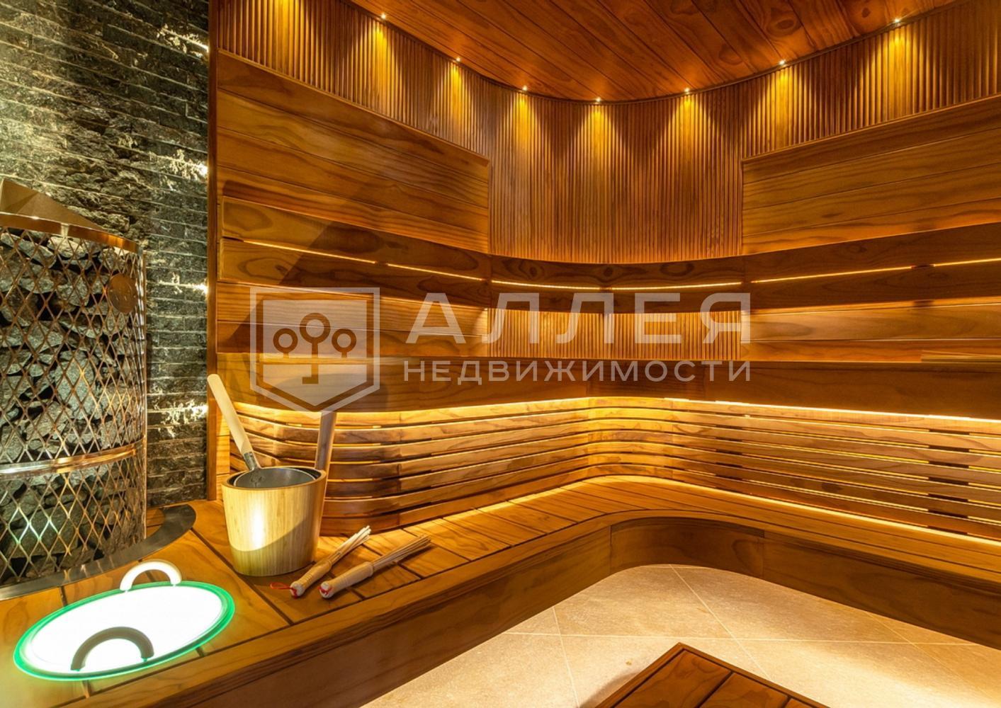 Дом с бассейном на большом прилесном участке расположен на тихой тупиковой улице. Полностью меблирован и готов к проживанию. В spa - зоне сауна и большой бассейн 4х10м с подсветкой, противотоком и водопадом. В гостиной дровяной камин и второй свет с зимним садом. На цокольном этаже бильярдная с баром и кинотеатром. Спальни в доме просторные и светлые с санузлами, гардеробными и балконами.