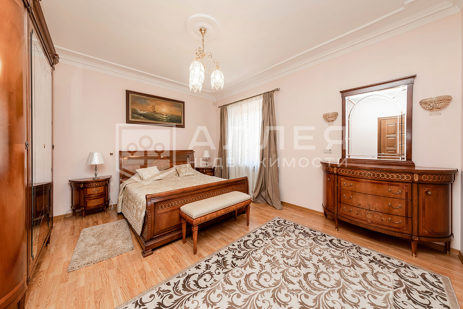 Большой дом с бассейном для большой семьи. В доме много спален с санузлами. Есть отдельный блок на первом этаже для родителей, гостей или персонала. Сделана современная удобная планировка. В просторной гостиной установлен дровяной камин из натурального камня. Есть кабинет, зимний сад, бильярдная. Использованы дорогие отделочные материалы - мрамор, змеевик, массив дерева. Установлен теплый пол. В бассейне сделано панорамное остекление со стеклянной крышей и красивыми видами на звезды, установлен противоток. Дом полностью меблирован и готов к проживанию.
