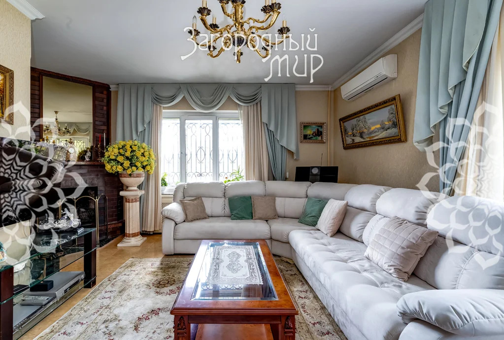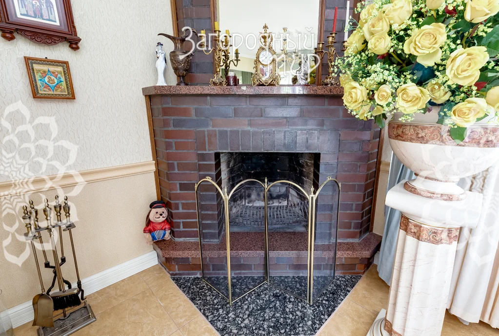 Просторная гостиная с уютным камином — идеальное место для вечеров с семьей или друзьями.