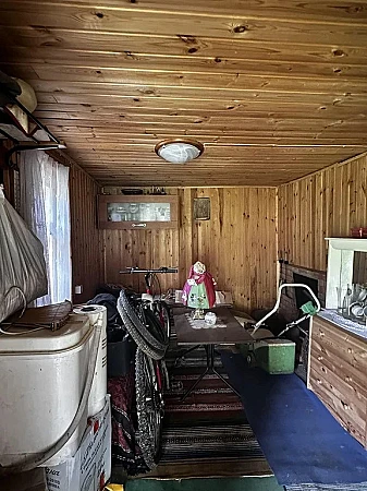 Жилой дом, Дмитровский р-н СНТ Овражки, в районе д. Теряево, бревенчатый, утеплен; фундамент ленточный, крыша – шифер, 3 этажа, общая площадь 118,3 кв.м., жилая 40 (20/10/10) кв.м., кухня-гостиная 30 кв.м. Дом отделан вагонкой. Отопление печное. В доме камин. Электричество в доме, летний водопровод на участке, туалет на улице.