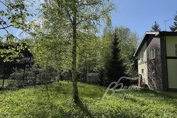 Благоустройство участка: ровный рельеф участка гармонично дополняют ели и березы, на участке есть парковка на 4-6 автомобилей.