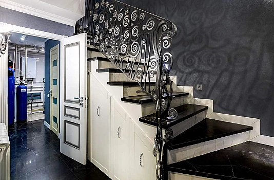 Внутренняя отделка: выполнена отделка под ключ: стены оштукатурены и покрашены, установлены натяжные потолки, в санузел на 2-м этаже – тёплые полы, на второй этаж ведёт бетонная лестница с коваными перилами.