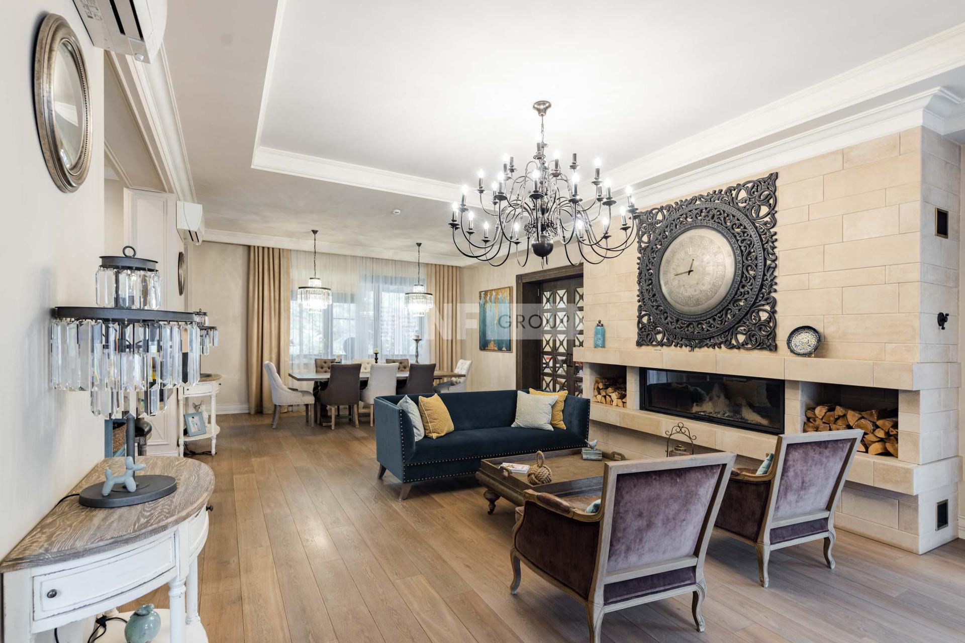Функциональная кухня укомплектована встроенной современной техникой. Гостиная с действующим дровяным камином станет излюбленным местом для душевных