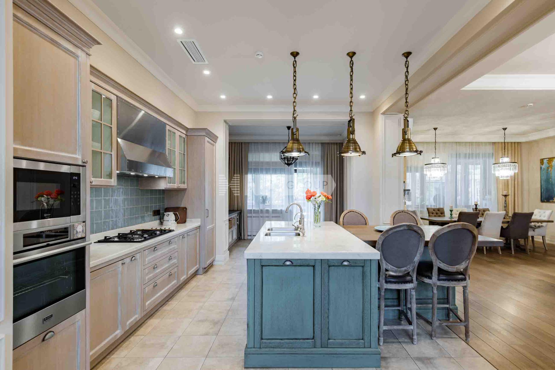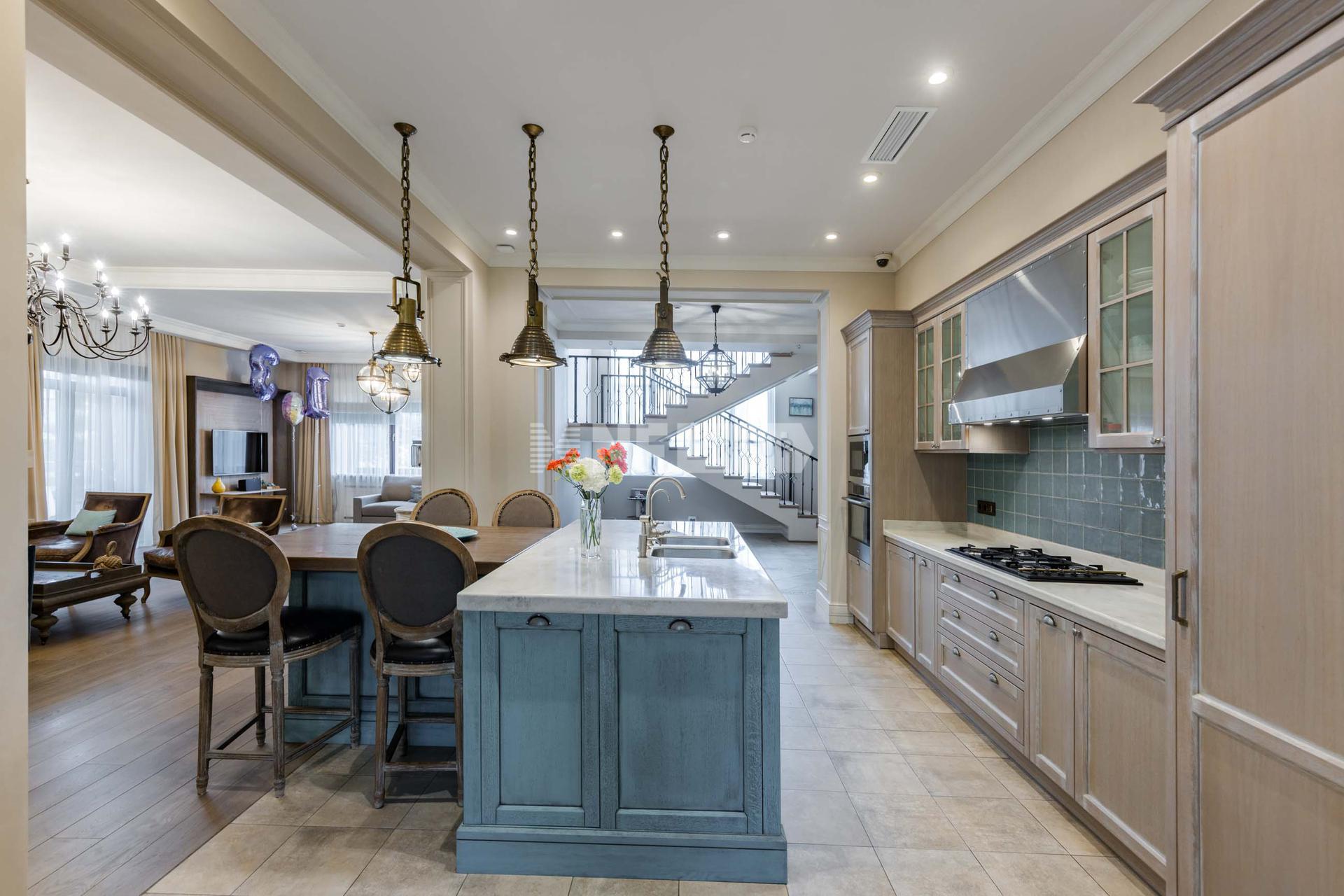 Роскошный интерьер исполнен в светлых тонах, дополнен стильной мебелью и изысканными предметами декора. Имеется отдельный вход в блок для персонала.