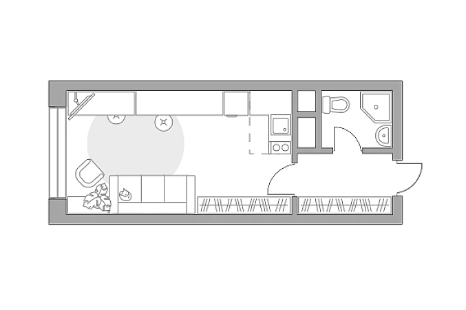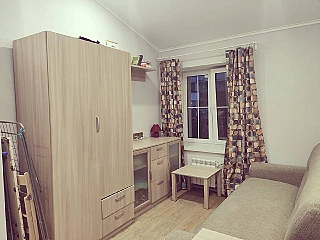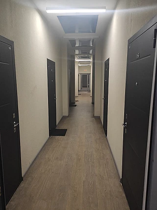 Жилая площадь 17.57 м2, кухня 1.87 м2, черновая отделка, комнаты смежные, окна выходят во двор.