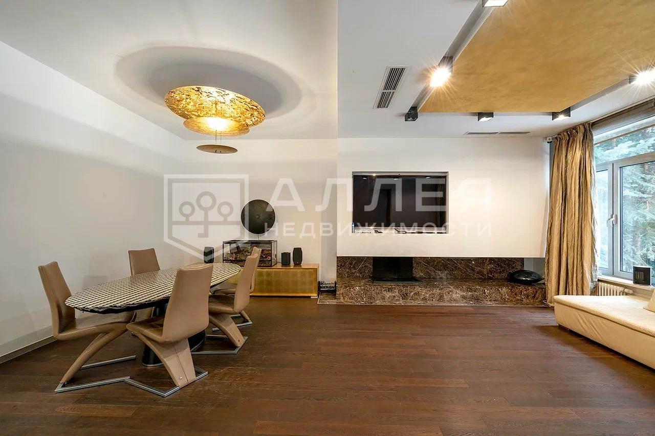 Таунхаус площадью 350 м 2 расположен в элитном поселке в 5 км от Москвы. Отделка таунхауса выполнена под ключ с мебелью. В доме организована зона отдыха с хамамом. В доме установлена современная техника. Интерьер выдержан в лаконичных теплых тонах.
