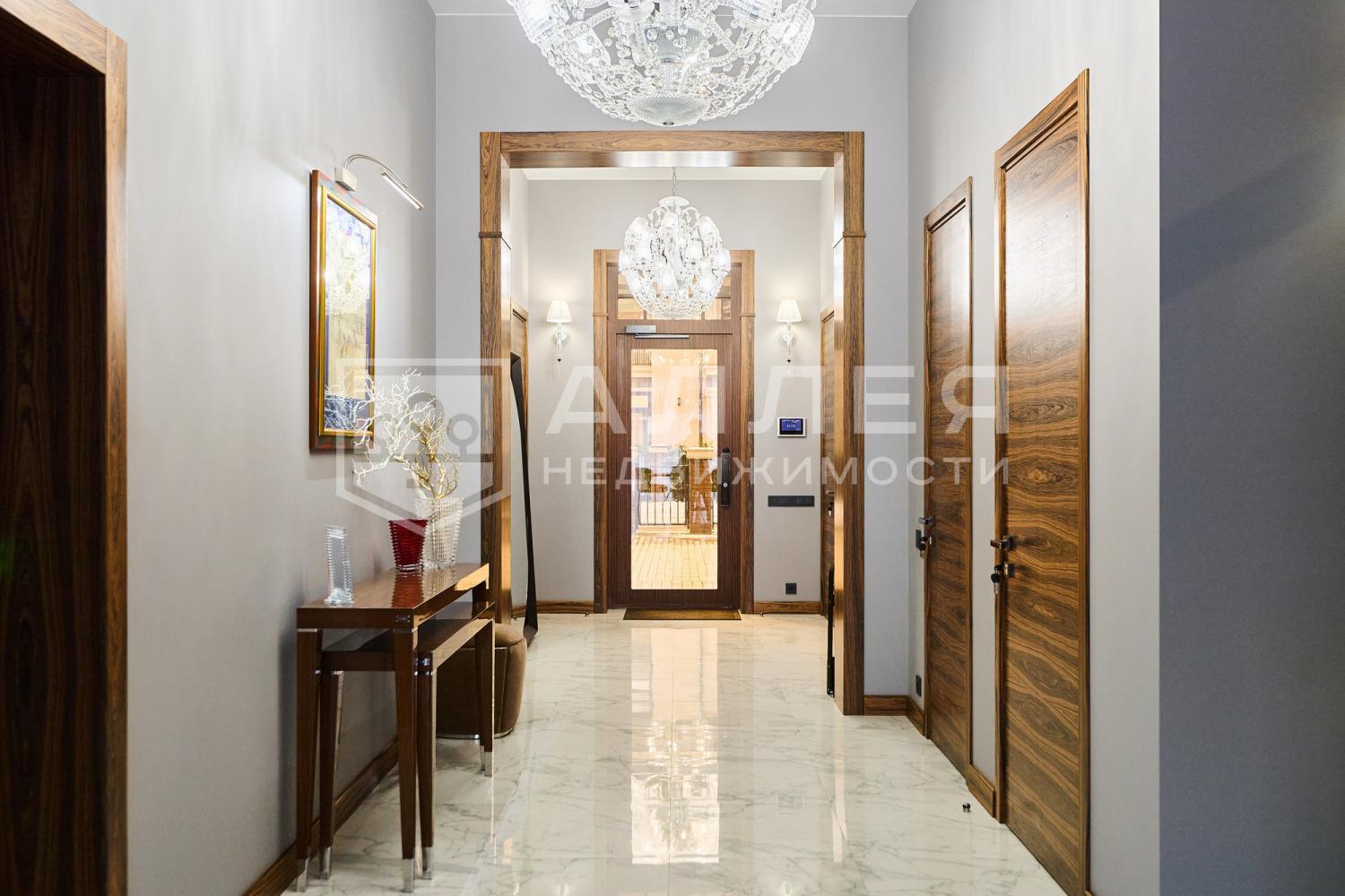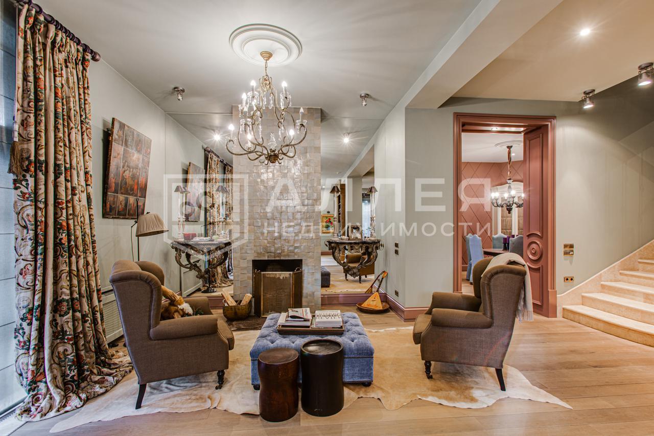 Дом с дизайнерским интерьером.В меблировке использована брендовая мебель с искусственным состариванием, также установлены антикварные предметы мебели. Весь дизайн дома выдержан в одном стиле дома. В доме 6 спален с индивидуальными гардеробными и ванными комнатами, а также с выходами на балкон. Обустроена шикарная СПА-зона с хамамом и бассейн-инфинити.